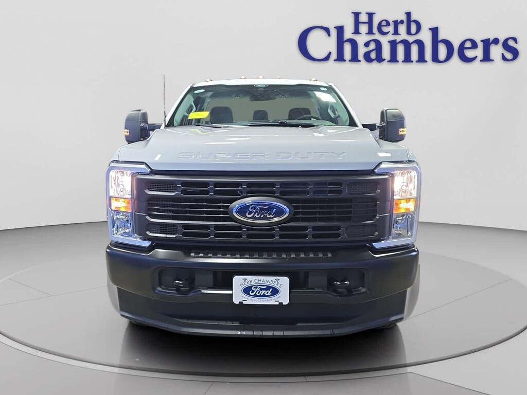 SNOW PLOW PREP PACKAGE: computer selected springs for snowplow application, Note 1: Restrictions apply; see supplemental reference or body builders layout book for details, Note 2: May result in deterioration of ride quality when vehicle is not equipped w/snowplow, Note 3: Dual battery (86M) recommended w/6.8L or 7.3L gasoline engines; see body builders layout book for details, PLATFORM RUNNING BOARDS, SPARE TIRE, WHEEL, CARRIER & JACK, UPFITTER SWITCHES (6): Located in overhead console, PRO POWER ONBOARD - 400W: 1 in-dash mounted outlet, 250 AMP ALTERNATOR (GAS), LED ROOF CLEARANCE LIGHTS, MEDIUM DARK SLATE, CLOTH 40/20/40 SPLIT BENCH SEAT: center armrest, cupholder, storage and drivers side manual lumbar, OXFORD WHITE.